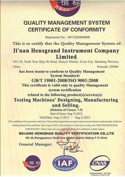 質(zhì)量管理體系認(rèn)證證書(shū)